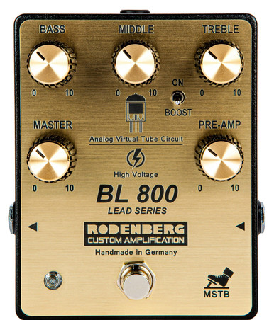 The BL800 is an amplifier overdrive pedal using tube technology, selected high-voltage components, dynamics through high-voltage technology and an uncompromising analogue signal path. The BL 800 delivers a clearly defined, tight sound with lots of attack.