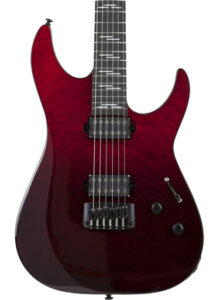 Specifications Mahogany body with flamed Maple top Black single-ply binding on body and neck Roasted maple neck Rosewood fingerboard with white Pearloid “Reverse Wave” inlays Thin “C” neck shape 5” scale length 14” fingerboard radius 24 Jumbo frets Black hardware Schecter Diamond Standard bridge humbucker with black metal cover Schecter Diamond Standard neck humbucker with […]