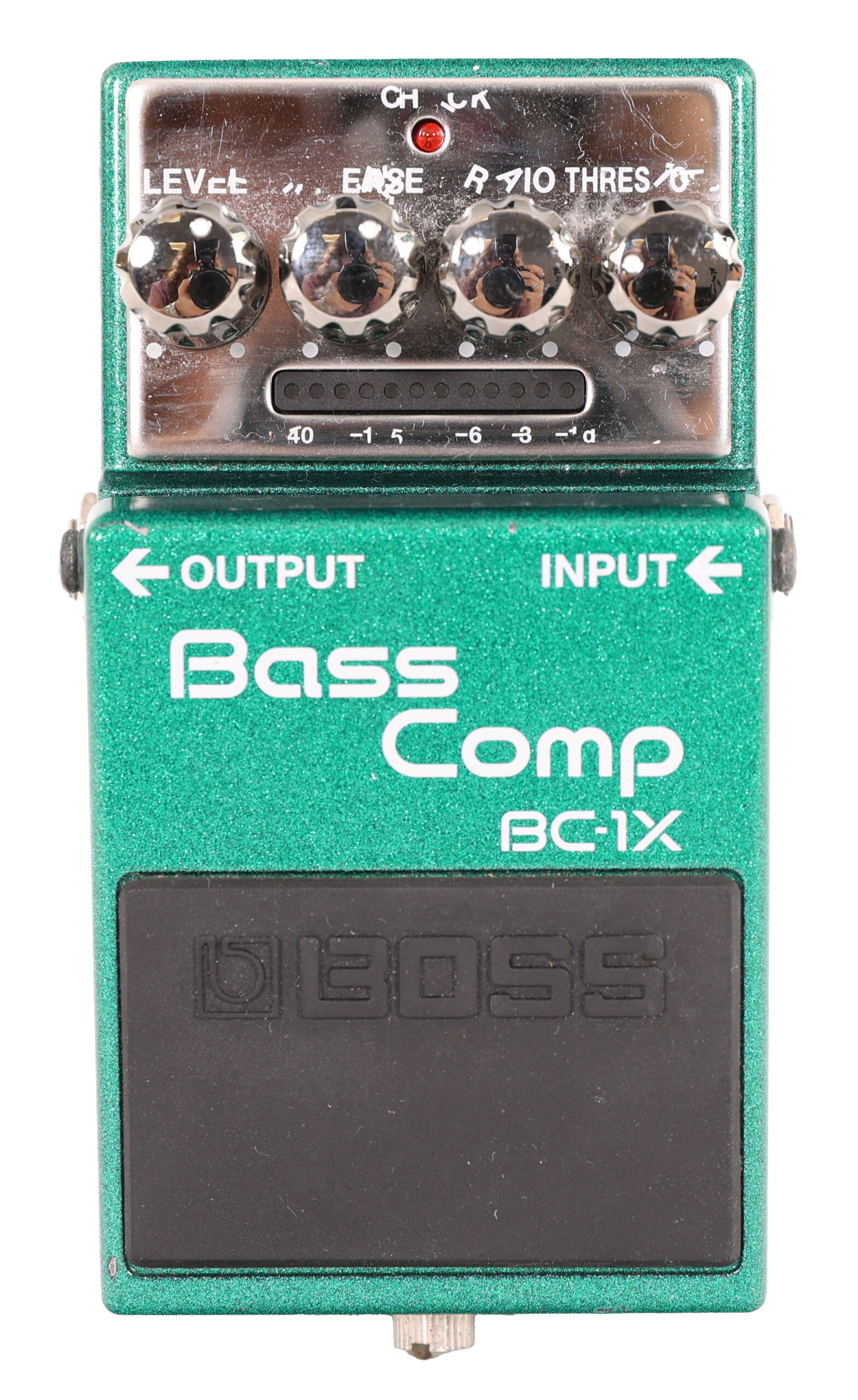 Bass. Compressor. Guitar FX — Guitar effects pedals add character, texture, and personality to your sound. From subtle ambience and reverb to heavy distortion or experimental modulation, effects shape how your guitar interacts with the world. A good setup starts with the basics like overdrive, delay, and chorus, then expands into creative territory with fuzz, phaser, or looper pedals. Whether you want vintage tones or modern soundscapes, experimenting with different combinations will help you discover your own signature style.. Hand. Pedal.