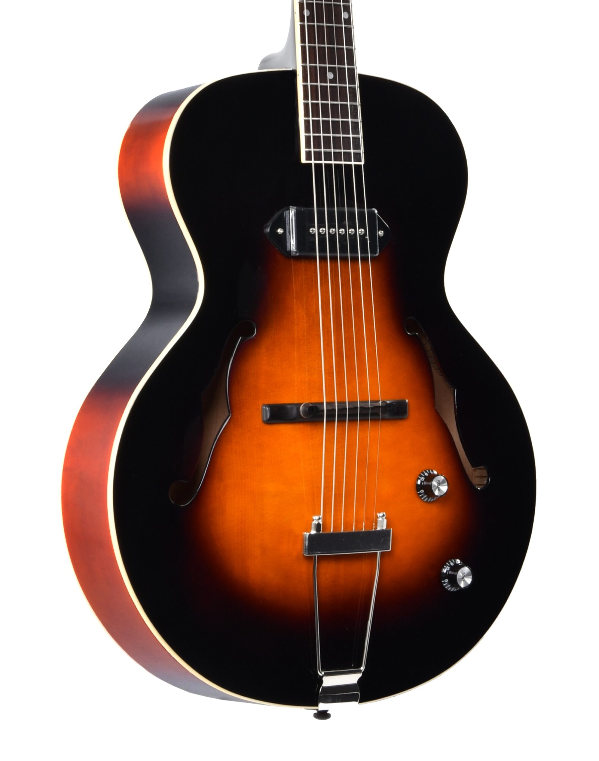 100E. Acoustic Guitars — Acoustic guitars are timeless instruments known for their natural tone, warmth, and versatility. Using a hollow wooden body to amplify the sound of vibrating strings, they produce a rich and resonant voice that suits everything from gentle fingerpicking to lively strumming. Favoured by singer-songwriters, folk musicians, and performers across countless genres, acoustic guitars are valued for their simplicity and expressiveness. Available in various body shapes such as dreadnought, concert, and parlour, each offers a unique tonal character and feel. Whether played around a campfire or on stage, acoustic guitars continue to connect people through their pure, organic sound.. ATA. Electric. Guitar. in. Semi-Hollow — Semi-hollow guitars blend the warmth and resonance of a hollow body with the feedback control and sustain of a solid body. Featuring a solid centre block running through the body, they deliver rich, open tones with added bite — perfect for blues, jazz, rock, and soul. From smooth cleans to gritty overdrive, semi-hollows like the ES-335 have become timeless favourites for players who want depth, character, and versatility in one beautifully balanced instrument.. Sunburst — Sunburst refers to a classic guitar finish that fades from a darker edge to a lighter centre, showcasing the natural beauty of the wood beneath. It’s one of the most recognisable and timeless looks in guitar design, adding depth, warmth, and vintage character to any instrument. Available in styles like two-tone, three-tone, and cherry sunburst, each variation brings its own personality and flair. Whether on an acoustic or electric guitar, a sunburst finish captures that perfect blend of tradition and style, making every instrument look as good as it sounds.. Vintage.