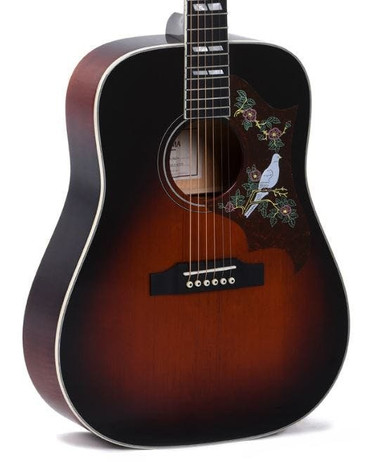 A solid Sitka spruce top combines with sleek flamed maple back and sides for a bright, dazzling character. Everything is coated with a decadent sunburst finish; an eye-catching dove design adds a final visual embellishment. The low profile neck pattern is a standard right across the Sigma range for good reason, giving you a comfortable modern shape to move about the micarta wood fretboard. It’s a seriously well-rounded guitar package.