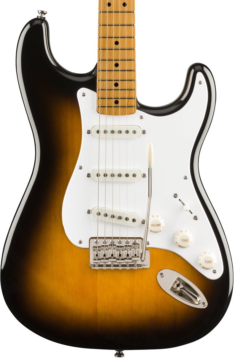 Guitars Pedals Amps & Stuff are excited this week as the almighty Squier Classic Vibe ’50s Stratocaster in 2 Tone Sunburst is now back in stock. These are built to an exceptionally high standard. We deliver Squier Electric Guitars straight to your door via our tracked *roadie service* across the UK, Europe, and the USA. A firm favourite among the finest gear available in the UK. if you want the full low down, click through to the Squier crew direct for more details, images, specs, and all the good stuff. Squier Classic Vibe ’50s Stratocaster in 2 Tone Sunburst