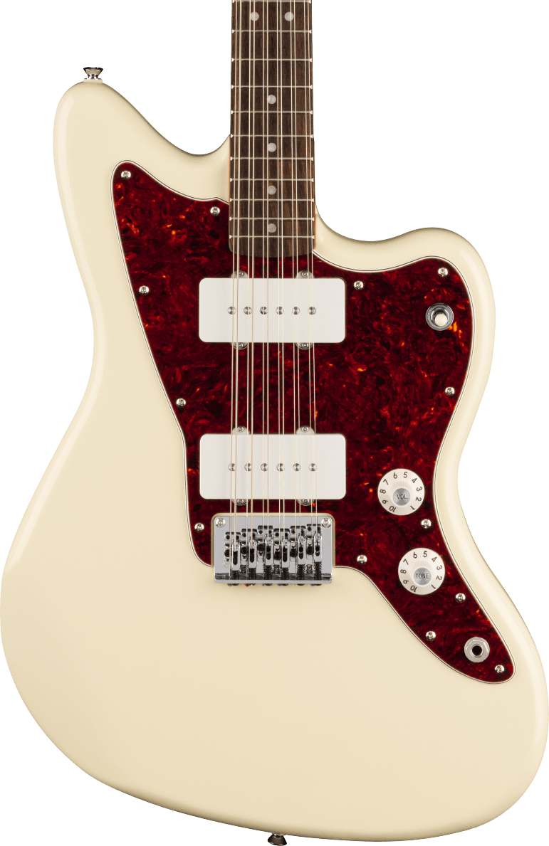 12-String. Electric Guitars — Electric guitars have shaped modern music with their versatility, power, and endless creative potential. Using magnetic pickups to convert string vibrations into electrical signals, they allow players to explore a vast range of tones through amplifiers and effects. From the smooth blues of a hollow body to the roaring crunch of a solid-body rock machine, electric guitars adapt to every genre and playing style. With designs from iconic makers like Fender, Gibson, and PRS, they remain the driving force behind rock, metal, jazz, and pop. Whether performing live or recording in the studio, electric guitars continue to inspire innovation and self-expression for musicians everywhere.. Jazzmaster — The Fender Jazzmaster was designed in the late 1950s for jazz players but quickly found fame in surf, alternative, and indie rock. Its offset body offers great comfort when seated, while the unique floating tremolo and wide single-coil pickups create warm, chimey tones with plenty of character. The rhythm and lead circuit switching opens up a world of tonal options. Loved by players who like to stand out — from surf pioneers to shoegaze icons — the Jazzmaster is all about individuality and feel.. Olympic. Paranormal.