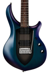 A boldly innovative guitar design, the 7-string Majesty marks a crowning achievement in collaboration between Ernie Ball Music Man and John Petrucci. Featuring a mahogany set neck with unparalleled fret access, 3-way pickup selector, and 12dB push-push volume pot, the Majesty is a masterpiece design.