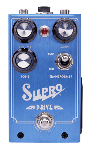 The Supro Drive captures the unmistakable sound of our vintage tube amplifiers in an effects pedal. By recreating every aspect of the circuitry of a 1960s Supro tube amp, including an actual output transformer, the Supro Drive achieves the magnetic saturation that gives Supro amps their iconic deep, warm, and gritty rock n' roll tones.