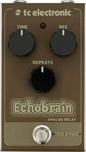 The EchoBrain is a simple, yet effective analogue delay pedal. The mix determines how loud the delay is on your signal and the repeats and time will determine the amount of each delay and the length between repeats.