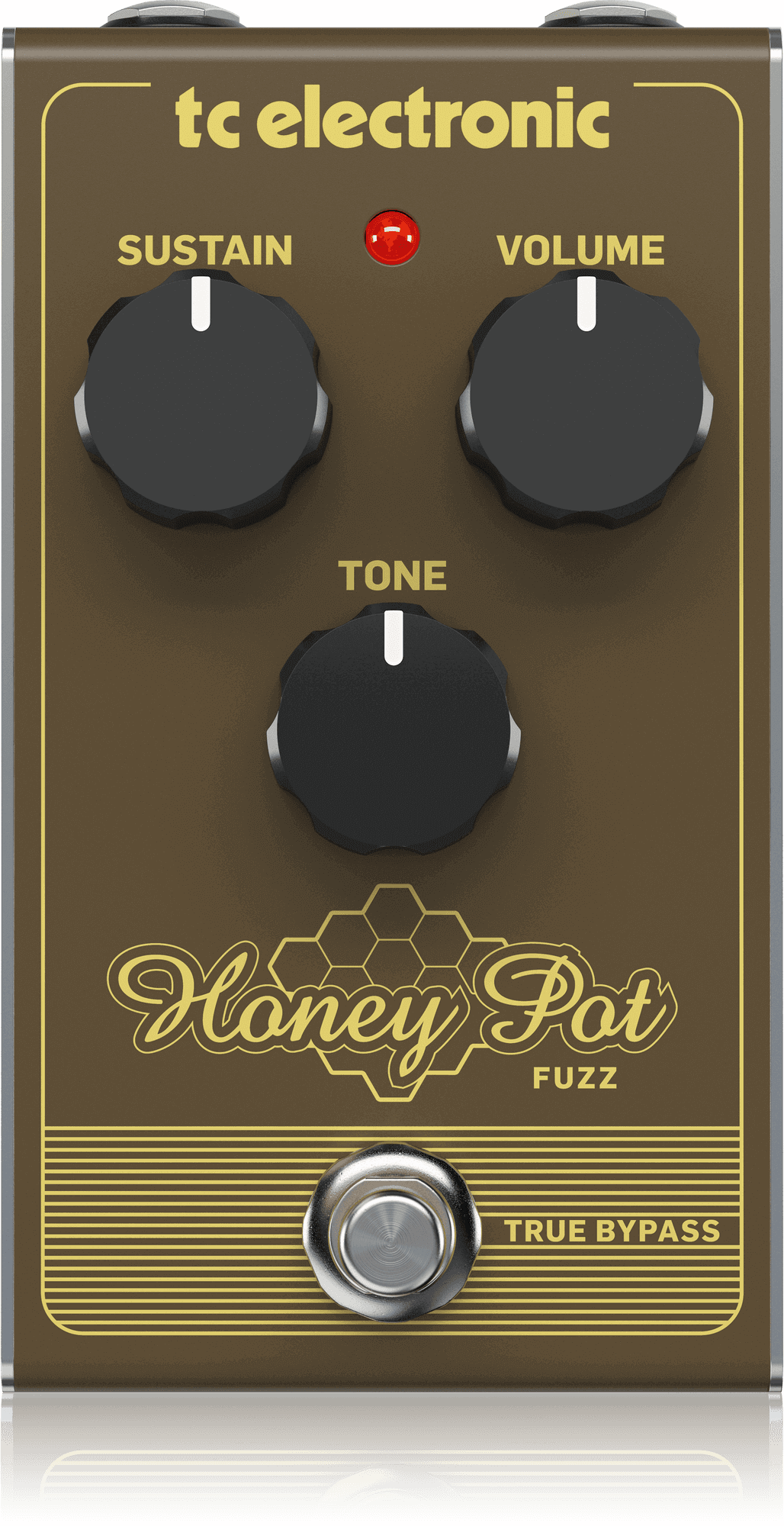The range of gain available in Honeypot Fuzz goes from a slightly gritty grind, almost like an overdrive, and all the way to massive walls of sticky honeycomb-structured distortion with seemingly endless sustain and a tone that's fat and nasty but with thick, sweet highs.