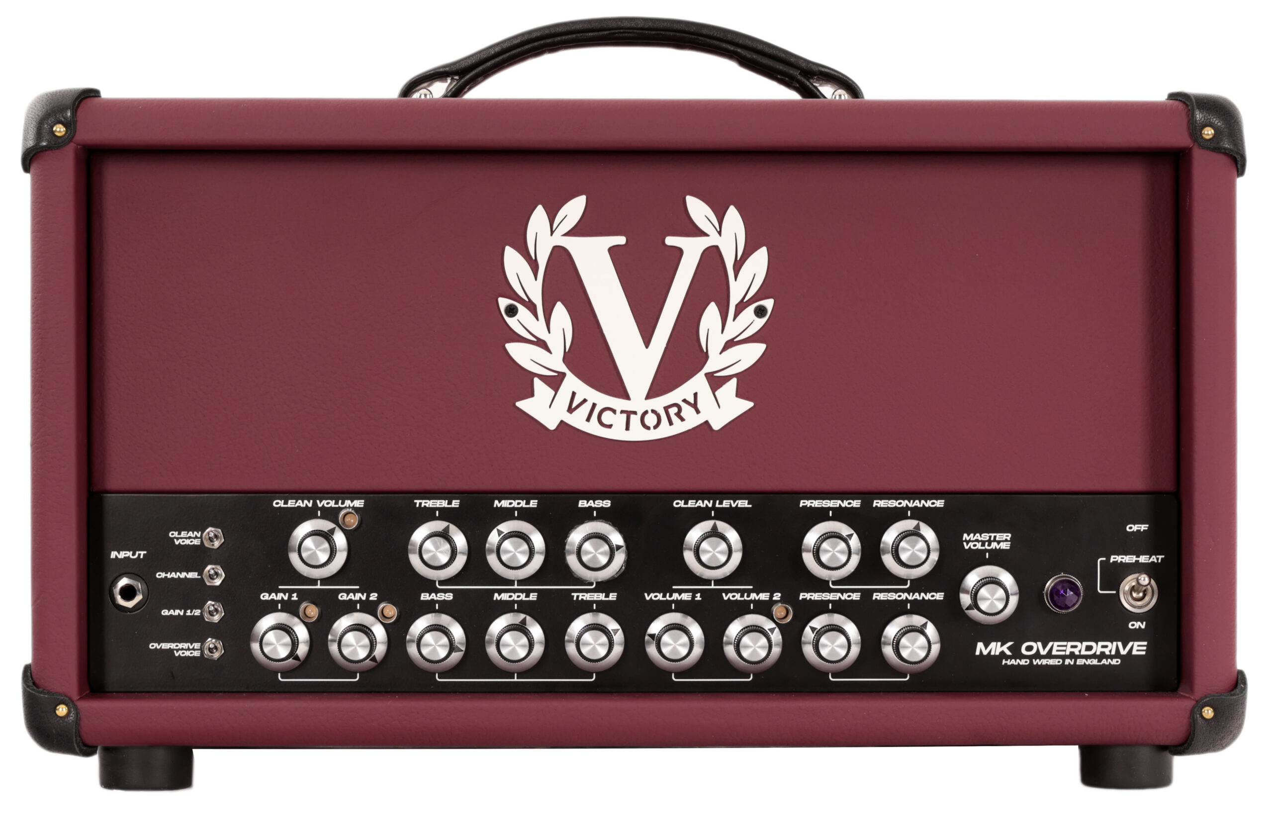 Guitars Pedals Amps & Stuff are in fine mood, we are now dropping the almighty Victory MK Overdrive 100w Hand-Wired Valve Amp Head in Burgundy into your world. This is fresh in Guitar Amps and Cabs, new, boxed, and transmitted your way by courier. No planet too small, no riff too loud. This is brand new gear, full warranty. Want the full details? Click through to the Victory team direct, they have more details than we could ever be bothered to type out here. no one reads it Blaa Blaa Blaa, Go on, treat yourself. You deserve it. Victory MK Overdrive 100w Hand-Wired Valve Amp Head in Burgundy