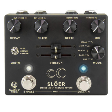 The Slöer Stereo Ambient Reverb pedal builds on Walrus Audio's popular Slö lineup but adds two more reverb algorithms, a stereo width control, two additional modulation wave shapes, and the ability to control the sample rate. Now, you can create immersive, lush, modulated, sleepy, and ambient soundscapes with more width and depth than ever before!