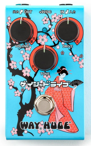 The Way Huge Smalls Geisha Drive creates a wide range of dynamic, touch-sensitive tones that can be dialled in from overdrive to distortion territory by adjusting your guitar’s volume knob. This pedal’s simple circuit allows the personality of you and your guitar to shine through. On the outside is a straightforward three-knob control setup. But they conjure up gritty, grinding tones that are as potent as they are versatile, and they’re shaped by the intensity of your attack and the volume of your guitar. At low Drive settings, you’ll get a warm, buttery goodness with a bit of velvet around the edges. Midways gets you thick, tubey overdrive. Start cranking that Drive knob towards the end of the range, and you’ll have gnarly thunder-and-lightning distortion. Use the Tone knob to brighten it up or mellow it out, and get as loud as you want to be with the Volume knob. Works well with an absolute clean amp or already overdriven amp on the edge!
