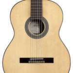 High-quality materials and clever design result in a reliable, well-balanced classical guitar. The combination of a solid Red Cedar top and Mahogany body and neck produce a lively, responsive and warm tone. The Rosewood fingerboard adds to the great sound and smooth playability.
